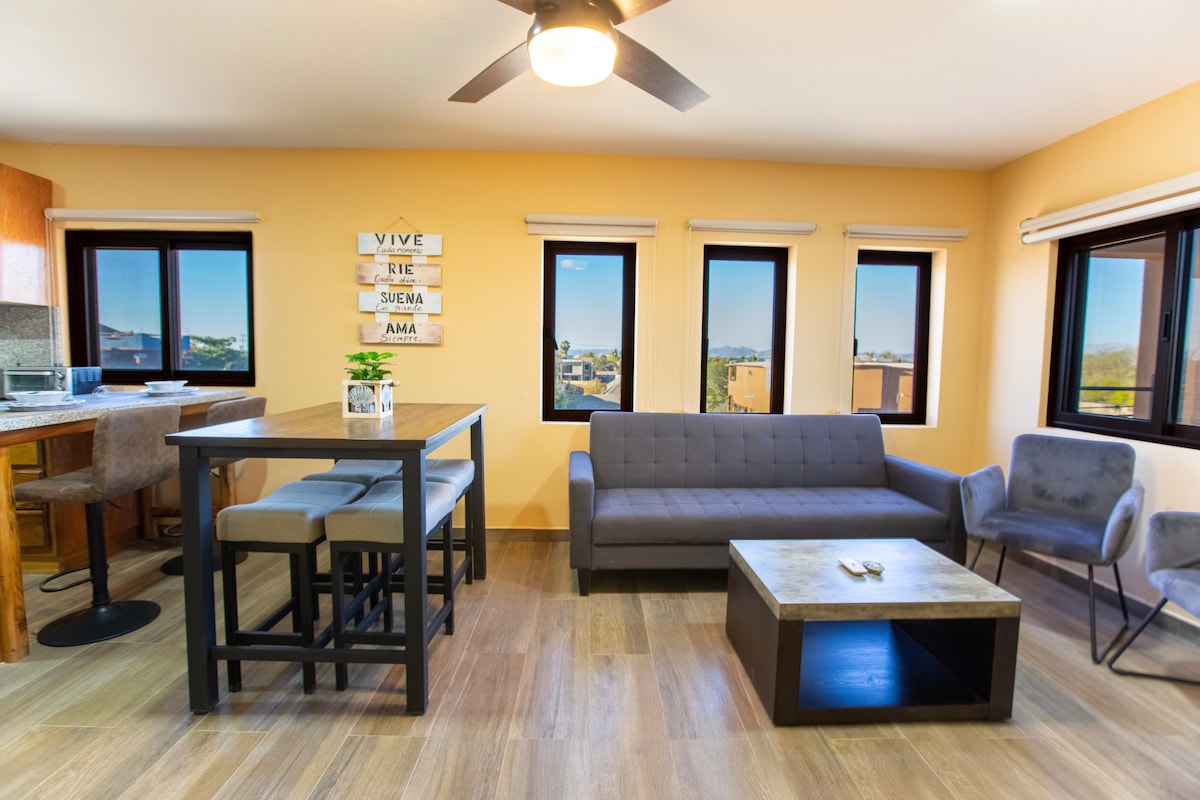 Relax on this unique and quiet getaway, in our bedroom studio overlooking El Centenario beach, La Paz. Enjoy amenities such as a pool, a spacious patio and gym, as well as space to park. And if needed, the studio has a sofa bed for an extra guest.
