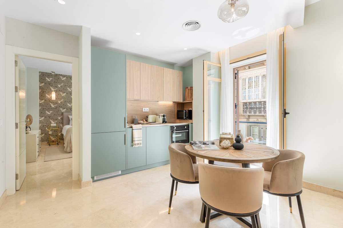 Step into the comfort of this luxurious studio nestled in the very heart of Malaga. Its prime location promises an elegant and relaxing retreat just a few steps away from the main local market, historical landmarks, charming cafes, top restaurants, exciting shops, booming port, sunny beaches, and much more! Contemporary luxurious design and a rich amenity list will leave you in awe. ✔ King-Size Beds ✔ Open Design Living ✔ Fully Equipped Kitchen ✔ Smart TV ✔ High-Speed Wi-Fi Learn more below!