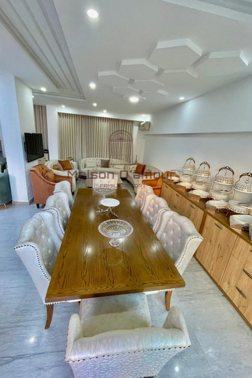 Charming S+2 house in Dar Allouch, just 500 m from the beach. Ideal for families or friends. Fast Wi-Fi, hot/cold air conditioning, TV with IPTV, washing machine. Terrace with barbecue and private parking. Calm, comfort and relaxation guaranteed.