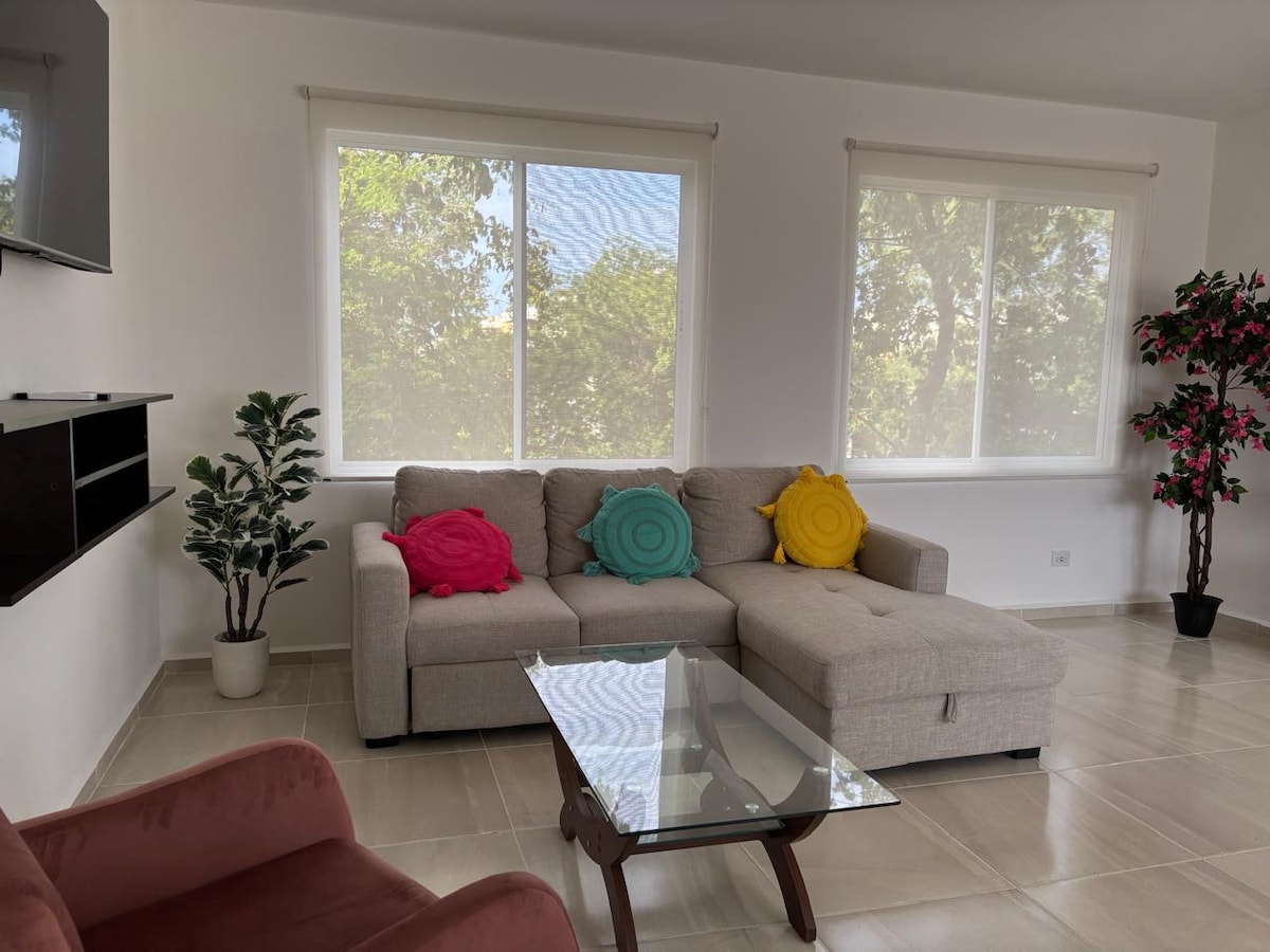 Enjoy an unforgettable getaway in the Colibri apartment, located in Porto Blu. This cozy and modern one-bedroom apartment is ideal for couples, small families or groups of up to 4 people. Just steps from the ocean, it offers a tranquil retreat with access to a spectacular rooftop pool and a privileged location for exploring the best of Puerto Morelos. Here, each day begins with a sea breeze and ends with unforgettable sunsets.