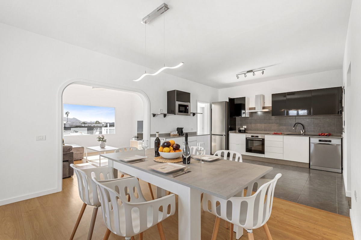 Casa Moon is a detached house with a swimming pool and solarium area. Its easy airport access and proximity to the main road make it easy to get to know the beautiful Lanzarote island. Ideal for large families or groups, featuring four bedrooms with television and air conditioning, three full bathrooms, an open kitchen, a dining room, and a living room with ocean views. Features a game room with billiards and darts, as well as parking for two vehicles. (VV-35-3-0001650)