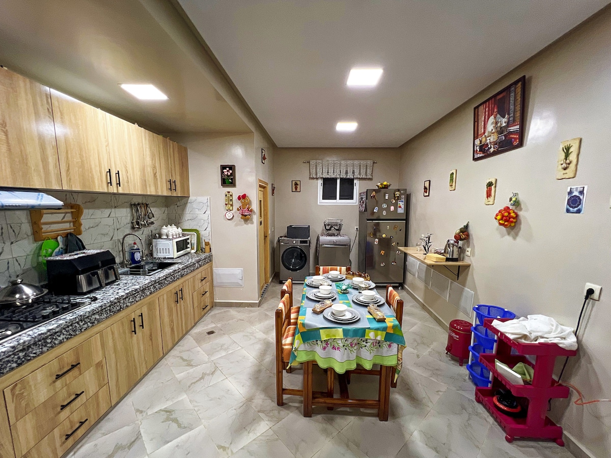 This peaceful home is perfect for a relaxing stay with family. Enjoy a comfortable, quiet and fully-equipped apartment, ideal for relaxing in peace in Tamallalet. Located close to shops and main local activities. A warm and attentive welcome awaits you!