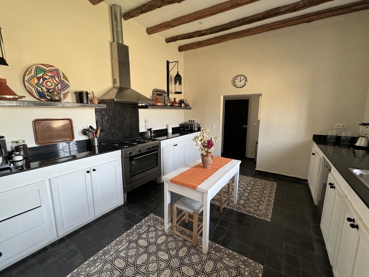 The Tafust house is a real gem just 30 km from Marrakech nestled in the heart of the village of Sidi Daoud. Its vast grounds are adorned with a majestic olive grove creating a rejuvenating atmosphere. The centerpiece of this residence is its sparkling swimming pool; a haven of freshness to relax while admiring the views of the Atlas Mountains. Nearby; shops, a French artisanal bakery, a pharmacy, a porcelain workshop with a workshop open to visitors.
