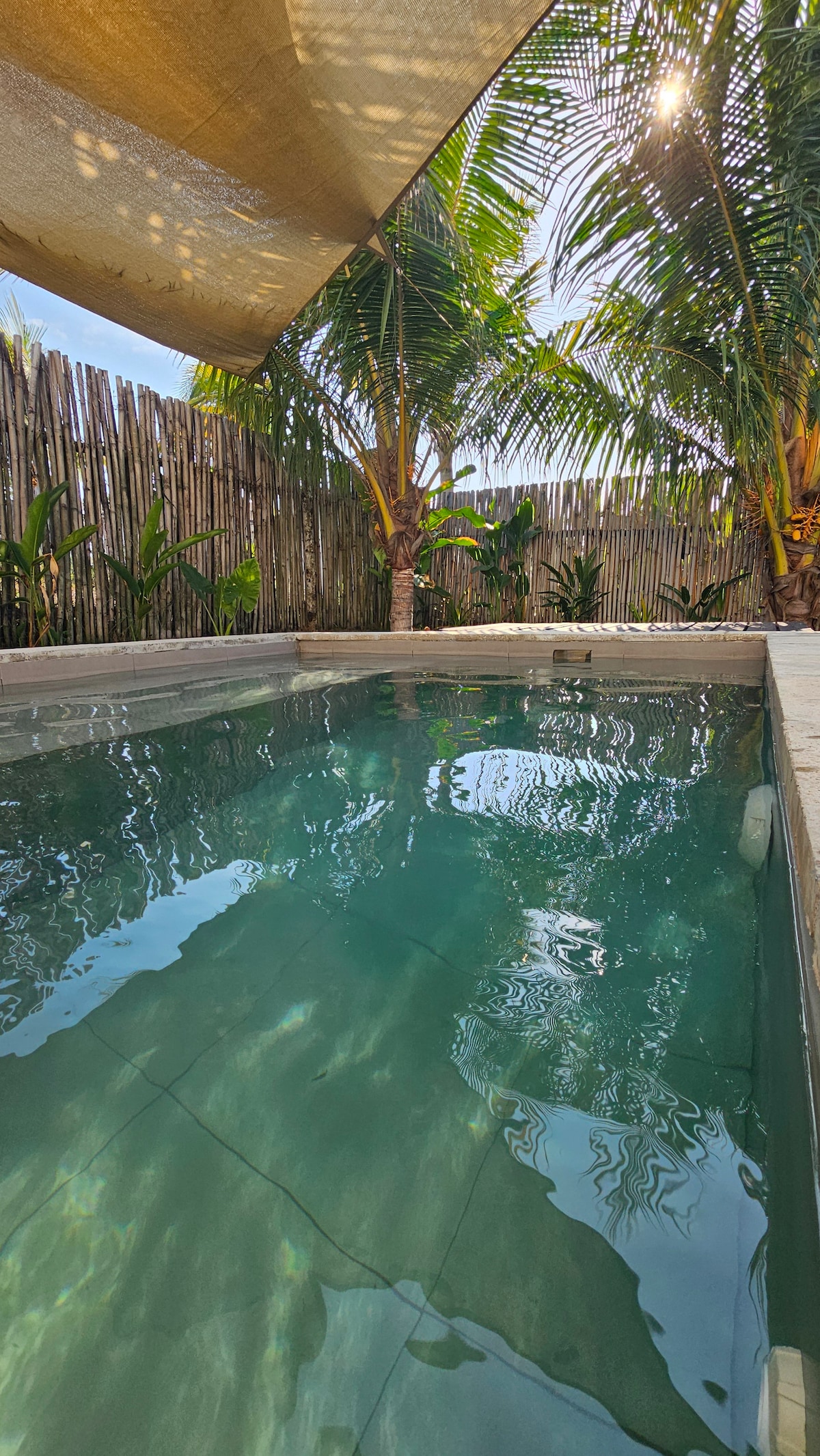 Slow down and sink into beach life at the Solana Deluxe Casita. Step outside to a sparkling 15-meter pool, shared with a handful of other casitas, perfect for a morning swim or sunset dip. Inside, relax in a king-size bed with air conditioning and high-speed Starlink WiFi. The casita also features a spacious upstairs living area, a fully equipped kitchen, and a private outdoor shower under the sky. It's everything you need for a peaceful, rejuvenating beach escape.