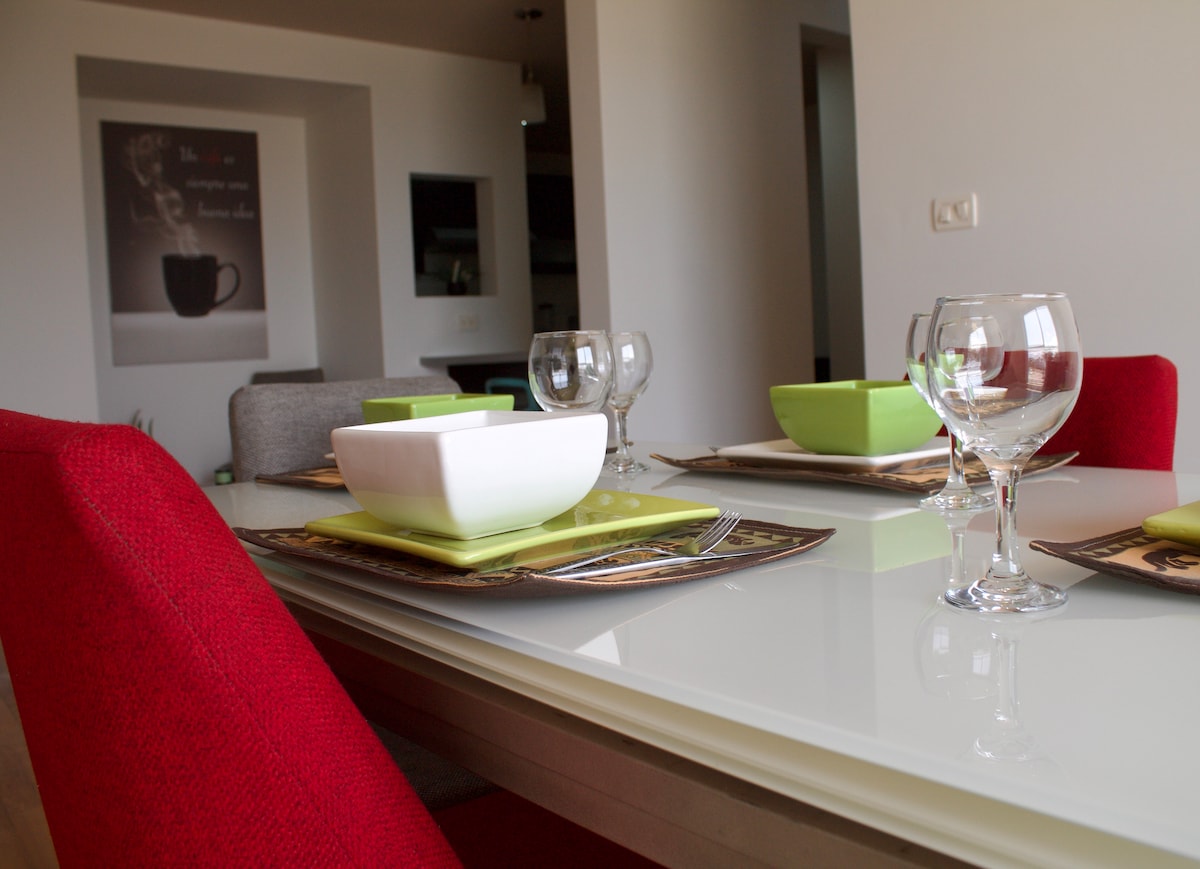 Enjoy this beautiful apartment for 4 people in a condominium with a swimming pool, gym, paddle tennis court, jogging track, children's play area, and private parking for 2 vehicles. Ideal for a weekend getaway or for medium-length stays where you can work from home. Wi-Fi, Netflix, purified water, and washer/dryer included. You'll have everything you need during your stay.