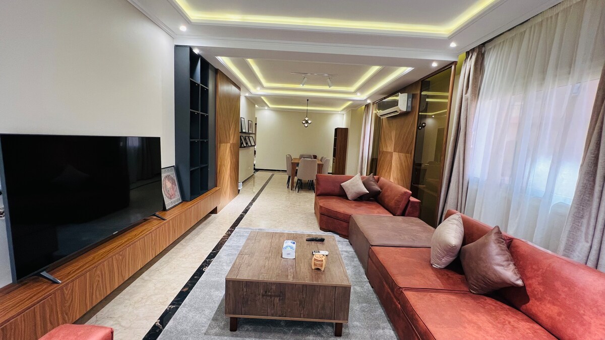 Located in Shaikh Zayed's vibrant 16th district, opposite Mazar Mall, our apartment is a blend of luxury and convenience. Enjoy a spacious living area with a 65-inch LG smart TV, reading corner, and dining for six. Three bedrooms await: a master suite with a private bath and two rooms with twin beds. A fully-equipped kitchen completes the experience. Dive into comfort and style in the heart of the city.