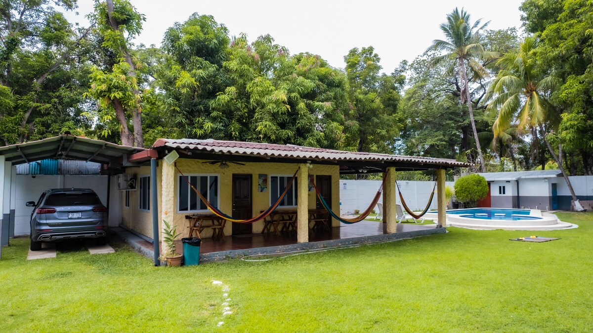 A place to rest while discovering El Zonte, the hostel is your perfect base. Located near the sea, ideal for surfing. It's easy to catch waves every day. The rustic and comfortable house offers a fresh and relaxing atmosphere next to the river, where comfort mixes with authenticity. The space invites you to enjoy the tranquility and harmony of the surrounding nature. Each room has its own private bathrooms, air conditioning and amenities.