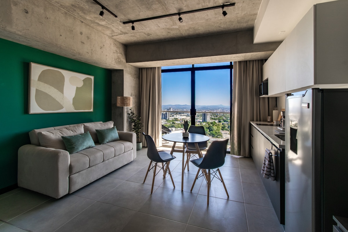 Located in the Art Haus tower, in the heart of Zona Rosa. Features a shopping center on the first two levels, a supermarket across the street, and is 500 meters from Hotel Barceló, in one of San Salvador’s safest premium areas, with access to top dining and entertainment, ideal for tourism and business. The apartment offers a spacious and bright studio, a separate junior bedroom, equipped kitchen, dedicated workspace with high-speed Wi-Fi, and 24/7 security.