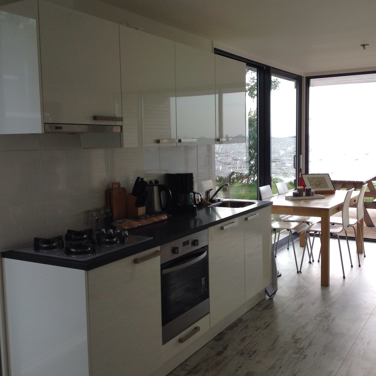 In a historic place near the lock/port in Workum is this colorful apartment "Loft" (Frisian for Air). A beautiful place on the water. Within walking distance of IJsselmeer and city center. Includes use of 2 canoes and motorboat. New (unique) dining kitchen and beautiful fresh bathroom. Double box spring and a comfortable sofa bed. A panoramic window overlooking farmlands and IJsselmeer. Waterfront terrace with cozy seats. WiFi! Unique place on open water and lots of nature!