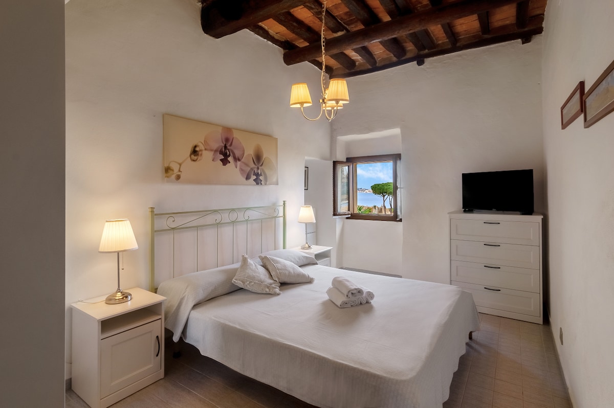 Magnificent historic building overlooking the Tuscan Archipelago! The entire apartment offers a breathtaking view of the Island of Elba and direct access to the sea. Furnished with elegance and rustic/ modern style is the ideal place for your holidays!! A unique experience that combines history, culture and fun, perfect for exploring the Tuscan coast, its crystal clear waters and its history! The house is less than 5 minutes walk from all amenities.