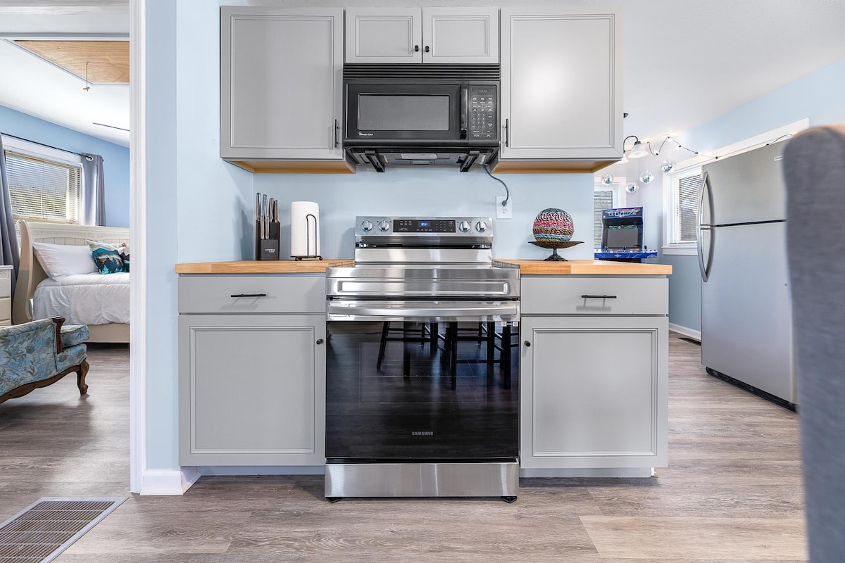 Sleeps 6. Enjoy our newly remodeled centrally-located home JUST 1.7 miles from I-26 (Exit 22). Amazing outdoor space in a fully fenced in backyard with smokeless firepit, outdoor fireplace, basketball & playground. Across from JC Country Club & Golf. 2.2 miles to Downtown Johnson City. 3 miles to Watauga River. 3.4miles to ETSU & VA Hospital. 4 miles to JC Medical Center. 4.8 miles to Boone Lake. 15.4 miles to Bristol Motor Speedway. NFL Blitz Arcade. Books & Games.
