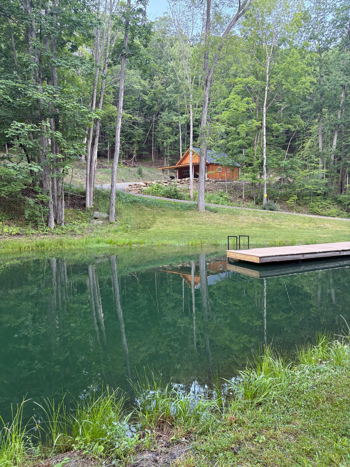 Relax. Rest. Renew. Stay for a while at our peaceful 8-acre retreat surrounded by mature woods. You will have a private pond (about ⅔ acre): fish from our new dock, ride a pedal boat, paddle a canoe or rustic rowboat, swim in the pond, or skate on it. Relax in the afternoon in a snuggly hammock. Soak in the greenery or fall colors while exploring the paths in the woods. Indulge in a meal or sip a drink on the deck. Gather around the campfire in comfy Adirondack chairs.