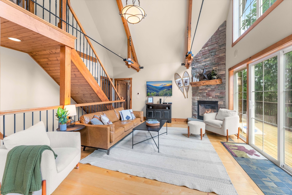 🏡Escape to our beautiful wood-beam chalet nestled in the trees—just minutes from downtown Ellicottville, Holiday Valley, and HoliMont. With 5 bedrooms, 2.5 baths, and two spacious living areas, there’s plenty of room for family and friends. Unwind in the private hot tub and barrel sauna, gather in the games room, or enjoy the cozy indoor and outdoor spaces. This light-filled retreat is designed for making memories year-round.