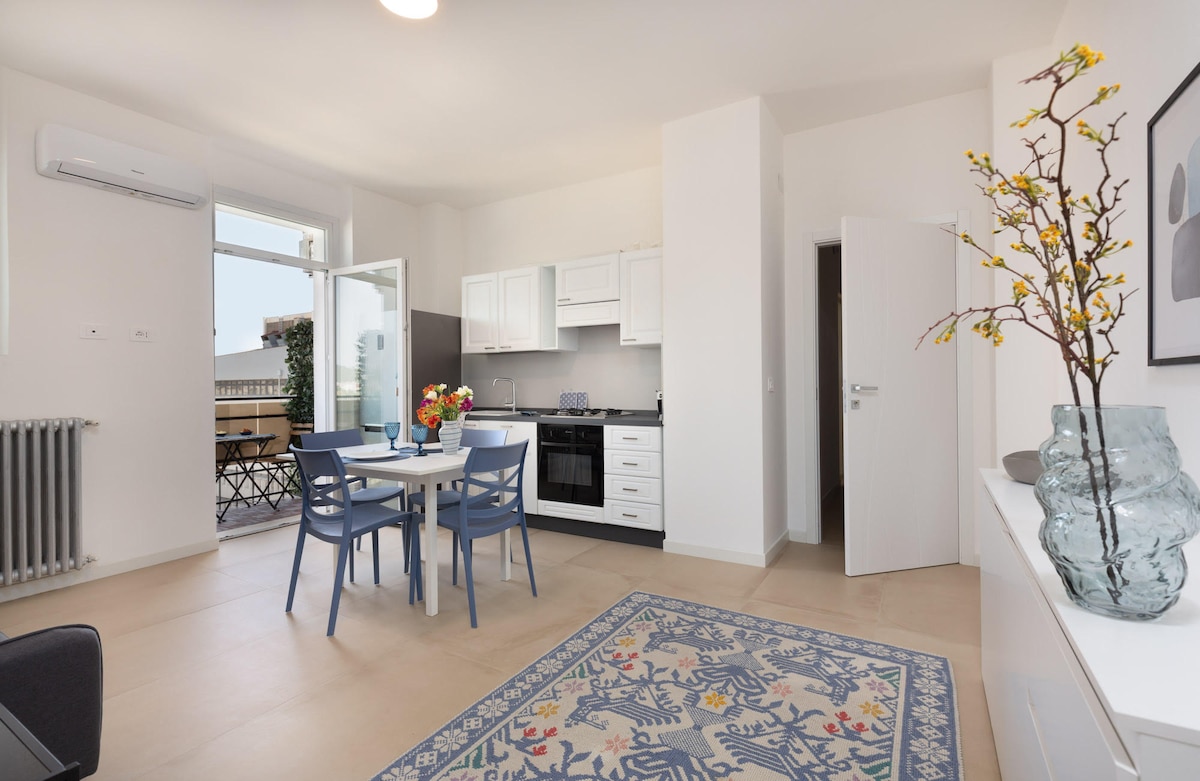 Appartement en duplex en plein cœur de la vieille ville de Cagliari, dans le quartier de stampace. Petite rue calme et colorée à proximité de la zone commerçante et du port. Logement entièrement neuf, rénové par une agence d’architecture parisienne. Grande pièce à vivre avec cuisine ouverte, très lumineux et vue sur la vieille ville. A l étage, une chambre sous le toit avec velux électrique et une verrière de type atelier, et salle de bain. Les parties communes seront prochainement rénovées.