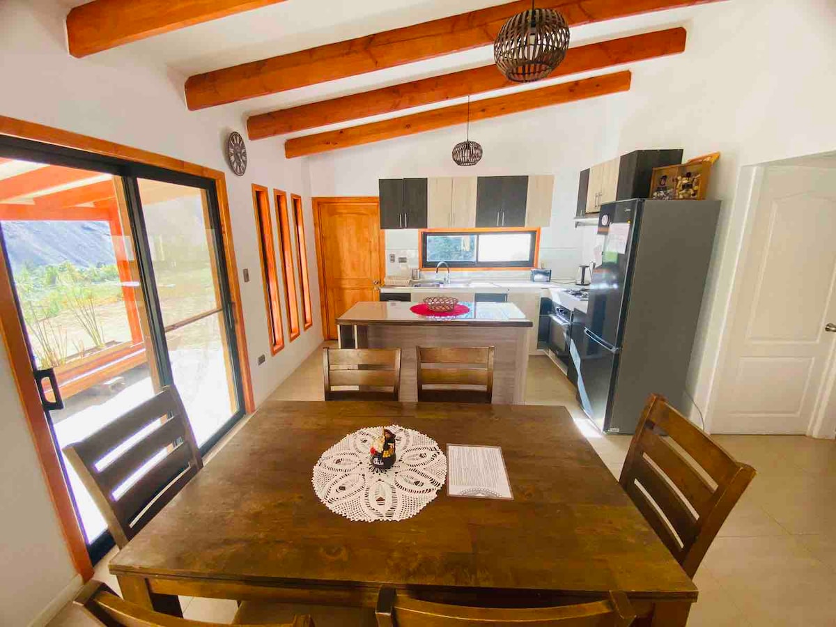 Stay in a brand-new wooden cottage for up to 4 guests, just 30 minutes from La Serena. The cabin offers - 2 bedrooms (1 double bed, 1 bunk bed), - a bathroom with shower; - a fully equipped kitchen; - a cozy living room with sofa; - and a dining area. Enjoy the 6×2m covered terrace surrounded by nature. Located in an ecological plot where birds sing and nature sets the pace—perfect for a peaceful retreat. We are petfriendly