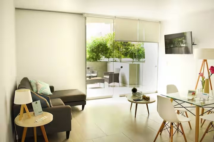 Beautiful beach apartment for rent, 5 minutes walk to Santa María beach and 15 minutes. Walking to Embajadores beach. Enjoy Lima's safest district with your family to stroll, relax and have fun. Located on the 3rd floor with stairs Sports areas open to the public, such as fronton, soccer, volleyball, children's play area. Some areas of the apartment are managed with Alexa! WIFI, Cable TV, ROKU Board Games You'll have rackets and balls to play fronton.
