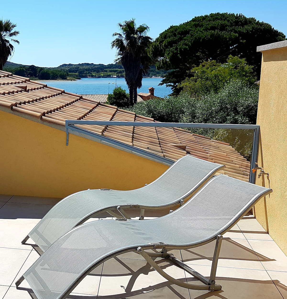 'La Gaou' is our family home located 100 m from the coast facing the Embiez archipelago and right next to the Gaou Islands. These natural spaces are sources of inspiration as the landscapes change according to the sun's path and climatic conditions. On the first floor of our villa, the apartment called 'La Presqu'île' intended for our visitors, offers a real balcony over the Brusc lagoon and views of the open sea.