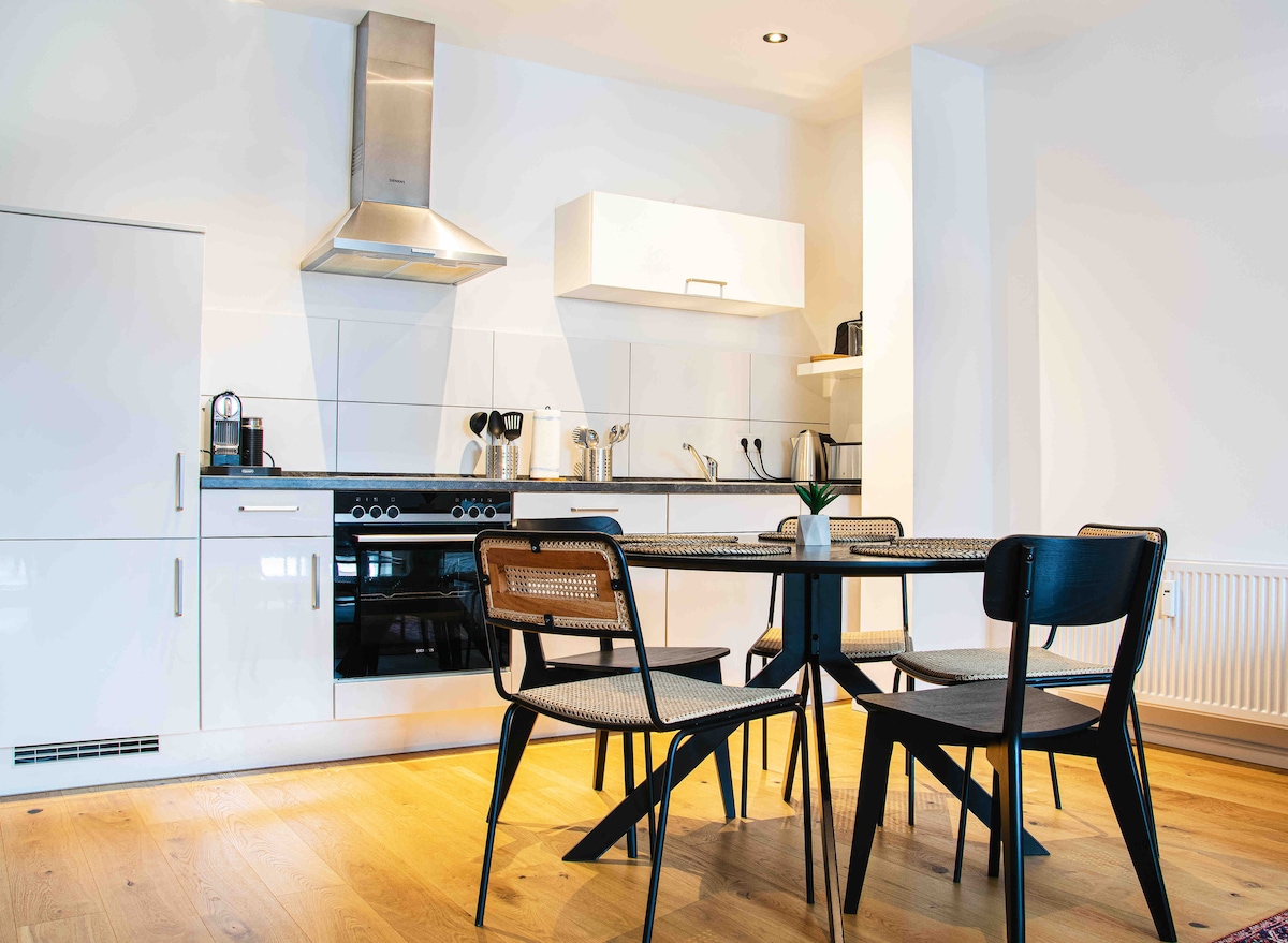 On 100 square meters of living space you will find a modern designed accommodation with a cozy sitting area, Netflix TV, an open fully equipped kitchen with a kitchen island. There are three bedrooms with comfortable box-spring beds (one of which can be separated into single beds) and a bathroom. The garden invites you to linger with its spacious dining area under the birch trees.