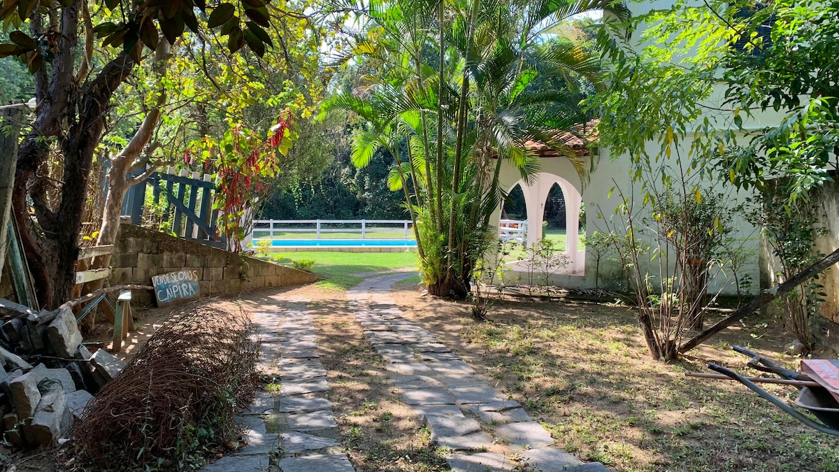 Discover the charm of Casarão Miguel Pereira-RJ: a haven of peace and history. Outside Space • Total area of 2,800 sqm and construction of 200 sqm • Masonry pool (8x4), surrounded by lawn • Volleyball network for outdoor fun • Carbon Steel Outdoor Wood Fireplace (85x85) • Gourmet space with barbecue • Private parking and garage