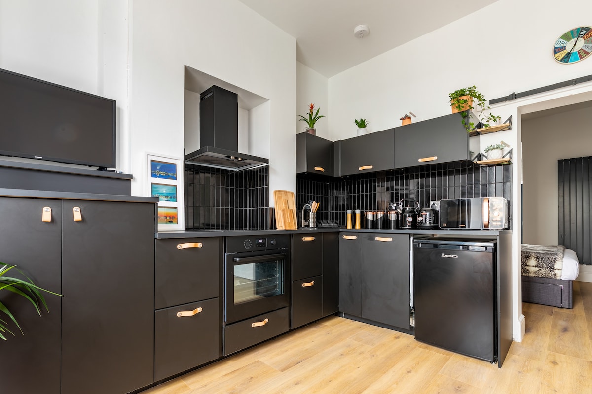 Coastal Soul at its finest! Incredible sea views & sunsets from the kitchen, breakfast bar, dining area & lounge. The beach is just a few steps away. You’ll love this spacious & sunny apartment with its open plan living area, kingsized bedroom with sofabed, bath and shower ensuite, a bunk room with full sized single beds and another shower room. You'll have the whole place to yourself in this beautiful Edwardian terraced townhouse. Please don’t hesitate to message me with any questions