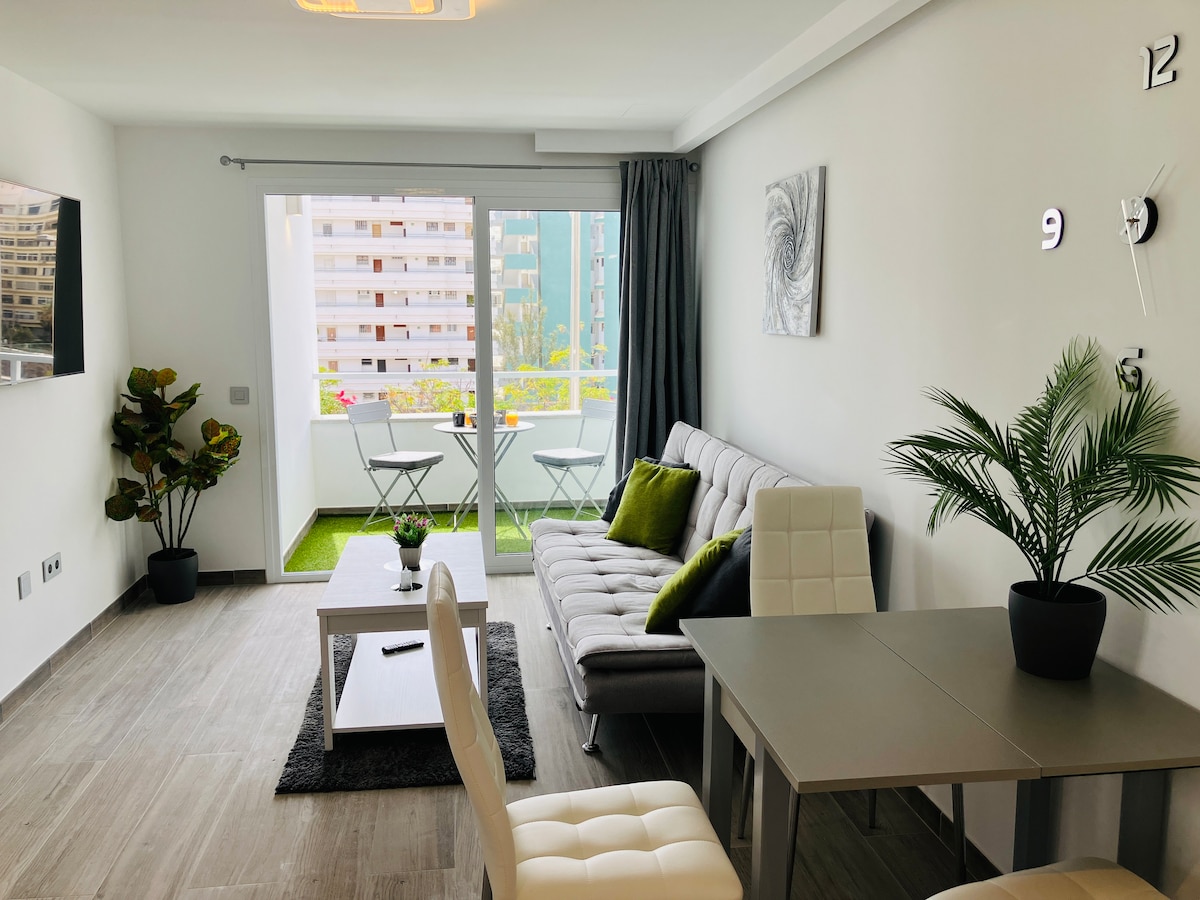 Welcome to your home from home in Playa del Ingles, Gran Canaria. The ideal place for a vacation or nomadic working Awarded Superhost status and committed to the Enhanced Cleaning protocol developed by leading health and hospitality experts. We want you to enjoy your stay! This 40 Sq.M quiet apartment is finished to the highest standards and finishes. Complex pool. Situated just 5 minutes walk from the beach and just a minute away from shopping, restaurants, cafes, bars and transport links