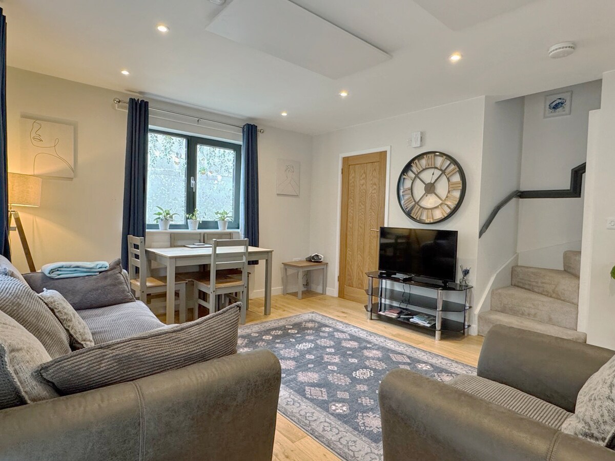 This modern 2-bedroom duplex apartment is situated on a quiet cul-de-sac, just a 4-minute walk from the iconic Truro Cathedral, 7 minutes from the Hall for Cornwall, and 12 minutes from Truro Train Station. Convenient for both holidaymakers and working professionals. A private entrance on the ground floor leads directly into the apartment. The layout includes a bedroom on the ground floor and another upstairs, providing ample space and privacy.