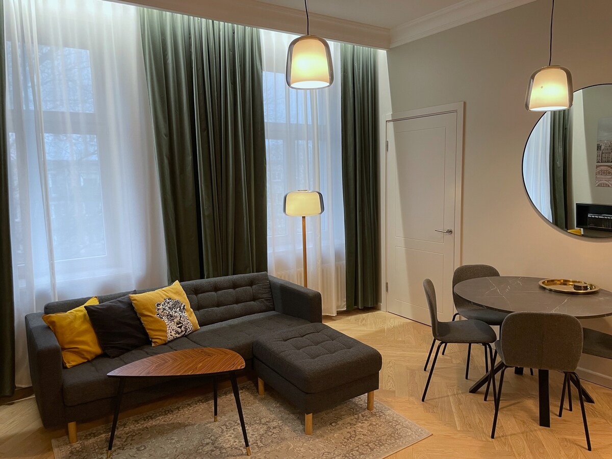 Modern apartment with fantastic location. Riga Old town is within 10 minutes walk, National Library of Latvia is just across the street. This stylish and cozy space is perfect for both leisure and business travellers. The apartment features a cozy bedroom, the sofa in the living room can easily be transformed into a queen size bed, making the apartment suitable for up to 4 guests. Perfect for longer stays.