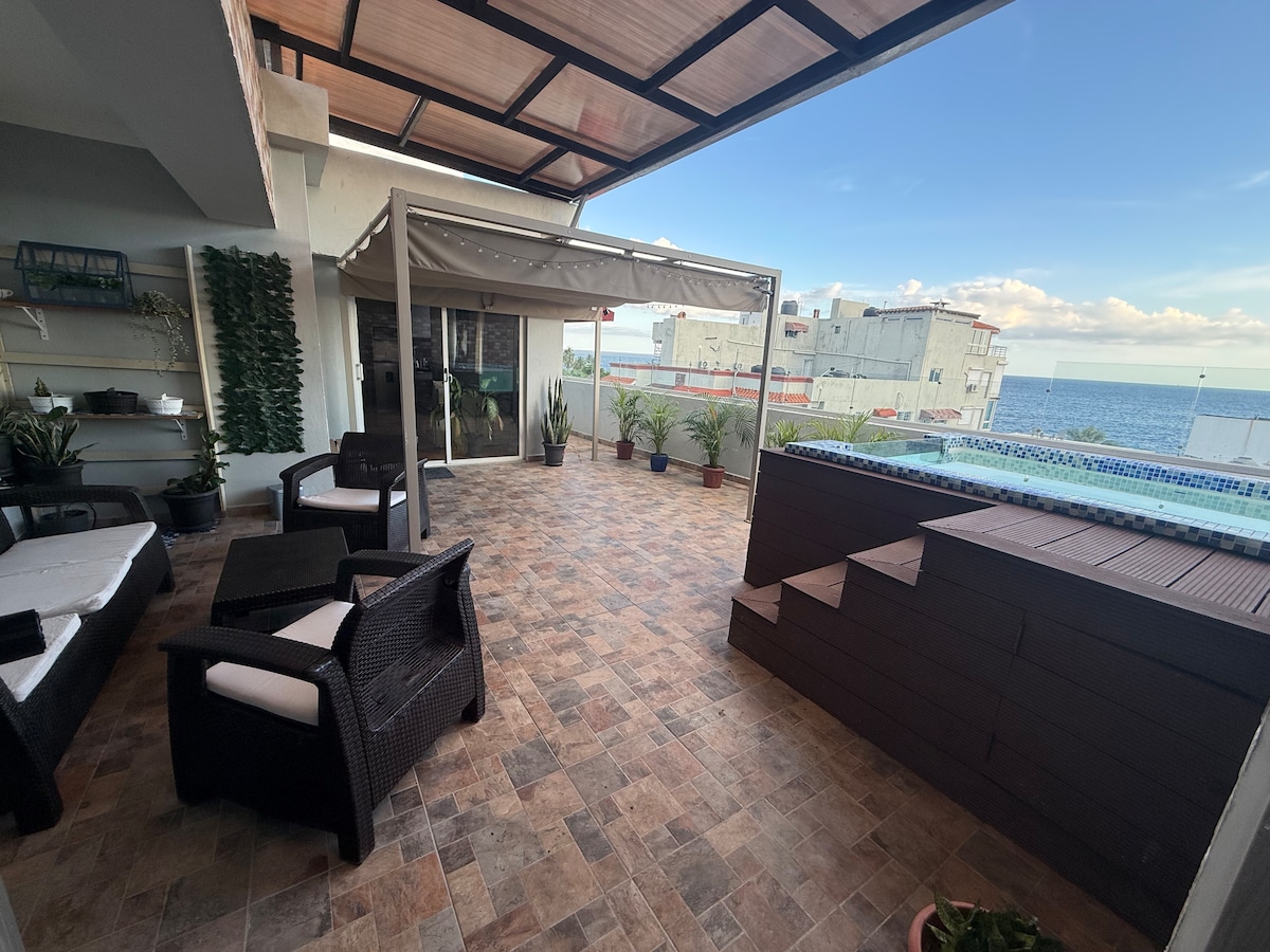 Discover this luxury beachfront studio, with a panoramic view that you can enjoy from any corner of the space. Experience total privacy, with no buildings in front, just the infinite blue of the Caribbean Sea. A few minutes from George Washington Avenue, with quick access to the main roads of Santo Domingo. Ideal for relaxing, disconnecting, working or enjoying a romantic getaway with comfort, elegance and peace in front of the sea.