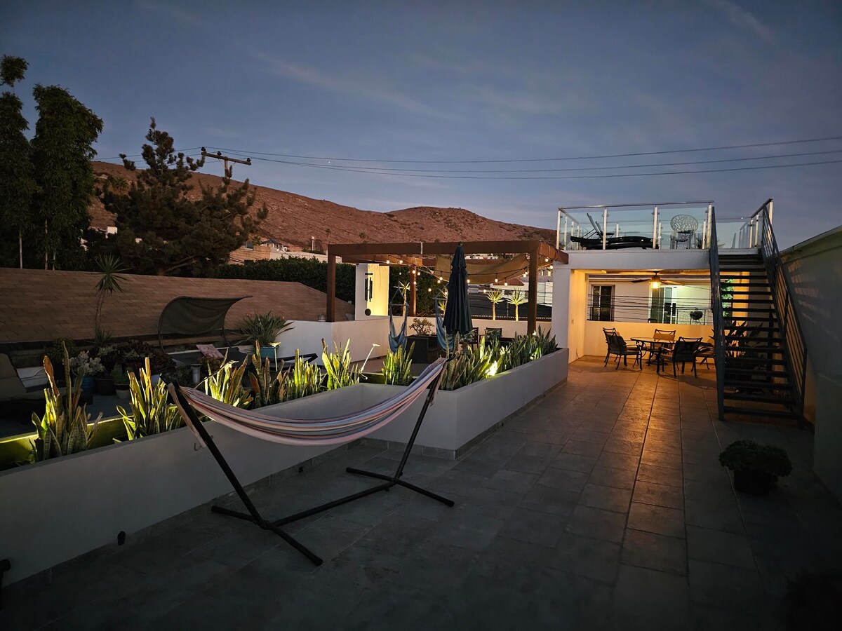 ¡Decoración colonial mexicana! Muy espaciosa, ideal para grupos grandes, familias y parejas, jardín amplio, área de asador y vista a todo Ensenada! Muy centrica, cerca de la carretera principal que te conecta de norte a sur y Valle de Guadalupe. Mexican colonial style big spaceous house, perfect for big groups, family and couple getaways. Very close to downtown, easy access to the main road that connects you to Valle de Guadalupe, and Tijuana.
