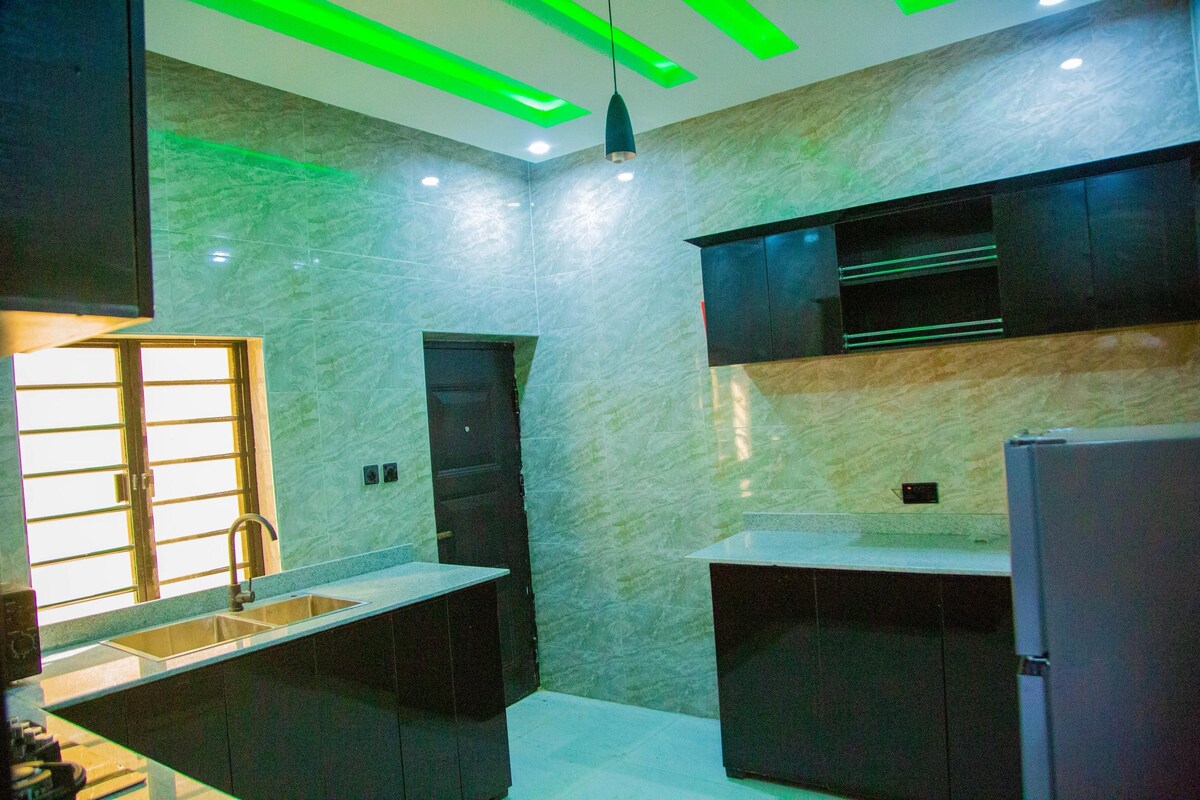 Home You'll Love: 3 ensuite bedrooms, fully furnished, airconditioned, secured apartment with kitchen to prepare and preserve your favorite meals. VERY STRICT RULE: PLEASE BOOK YOUR RESERVATIONS 48 HOURS EARLIER. Relax in this peaceful brand new building. Facilities: WIFI, DSTV, WATER HEATER, STANDBY GENERTOR FOR 24/7/360 POWER, PARKING, GATED BUILDING WITH SECURITY GUARD.
