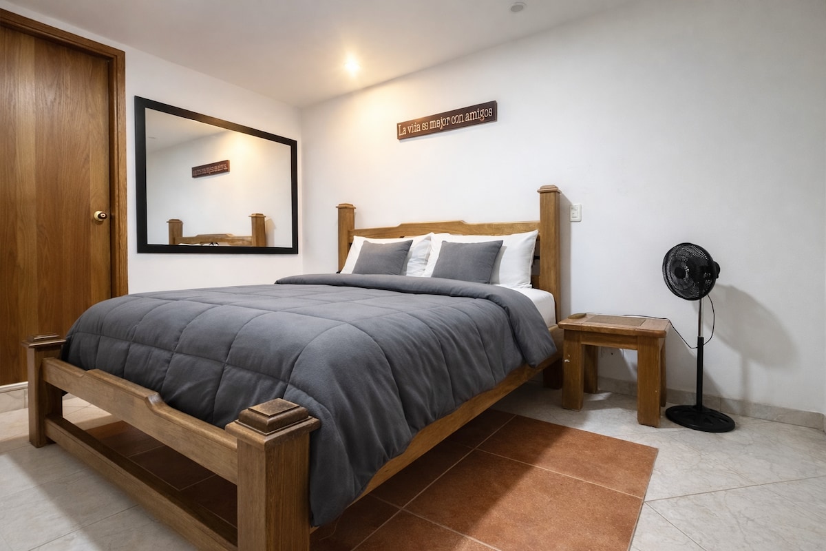 Descubre una experiencia, diseñada para quienes buscan elegancia, comodidad y exclusividad. Cada detalle ha sido cuidadosamente pensado para ofrecerte una estancia inolvidable: desde su decoración moderna y sofisticada hasta la iluminación cálida que crea un ambiente acogedor. Cama amplia y sumamente cómoda, sábanas de alta calidad, y un espacio impecable que combina estilo y tranquilidad. Ya sea que vengas a relajarte o a trabajar, encontrarás el equilibrio perfecto entre lujo y comodidad.