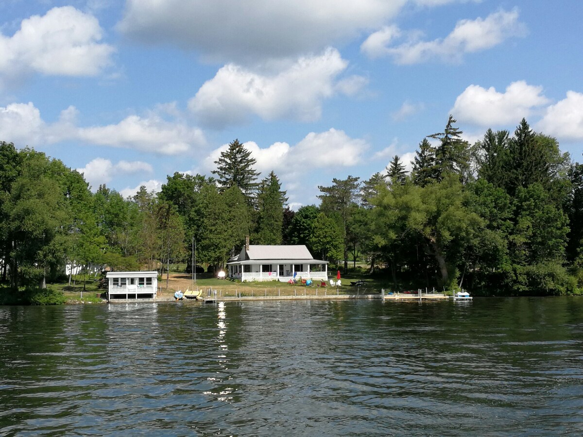 Unbelievable quaint cottage on beautiful Skaneateles Lake. Cozy up in this adorable lakeside getaway. Enjoy 140 feet of level lake front. Features include an active stream, dock for your boat, easy lake access, kayaks for use, as well as a water's edge fire pit on the point. Sleeps 2 adults. ATTENTION: The last 1/2 mile down is a steep gravel road. All wheel drive vehicles are recommended. (but not necessary)