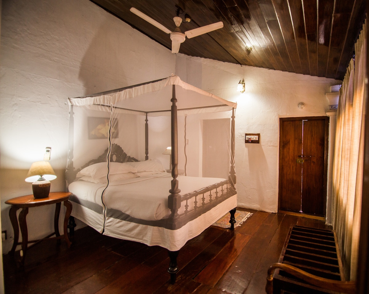 The Superior Room at The Old Courtyard Hotel offers spacious comfort with rich wooden floors, antique furniture, and high ceilings that reflect the charm of our 200-year-old heritage building. Choose between a double or twin beds, with mosquito nets and windows overlooking the courtyard or quiet lanes. Rooms include AC, tea/coffee maker, filtered water, Wi-Fi, and attached bathrooms with hot water and hair dryer.