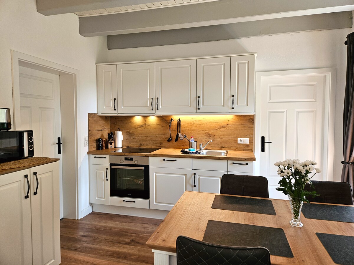 A warm "Moin" from beautiful Esens, on the East Frisian North Sea! The apartment (big sister of Studio ton Barkenboom) is quietly located in a 30 km/h zone, yet in the heart of the beautiful "bear town" of Esens on the North Sea coast. The city center, shopping, doctors and pharmacies as well as restaurants are within walking distance and the beautiful beach in Bensersiel is also a few minutes away by car.