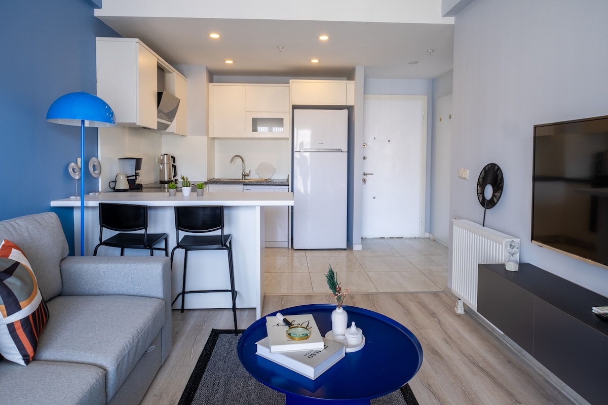 Note: This apartment is only suitable for monthly long-term stays. There is a 35% discount on monthly stays and a 40% discount on stays of 2 months or more. You can have a pleasant time with your family and friends in this carefully designed apartment. It is a luxurious and central site located on the E-5. It is a 5-minute walk to famous shopping centers and Metrobus, Istanbul's largest public transportation network. There is a restaurant, Starbucks and Migros in the site