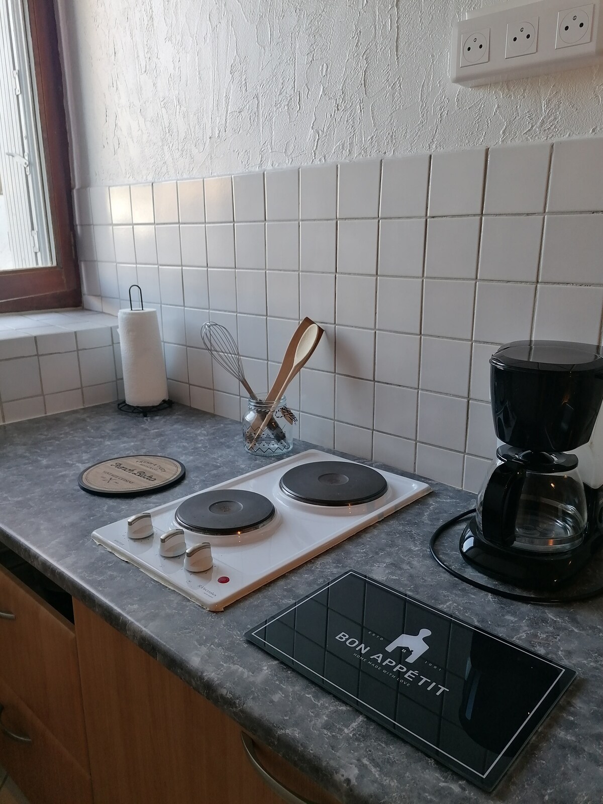 At the foot of Saint Joseph, on the ground floor (with steps) of a small building in a quiet area 20 minutes' walk from the center of Puy en Velay and 5 minutes' drive, 18 m² studio with sofa bed (new firm mattress 20 cm thick) fully equipped (free wifi), shared outdoor space, free parking spaces in the town, independent check-in with a key box, the arrival guide is sent to you 24 hours before your arrival