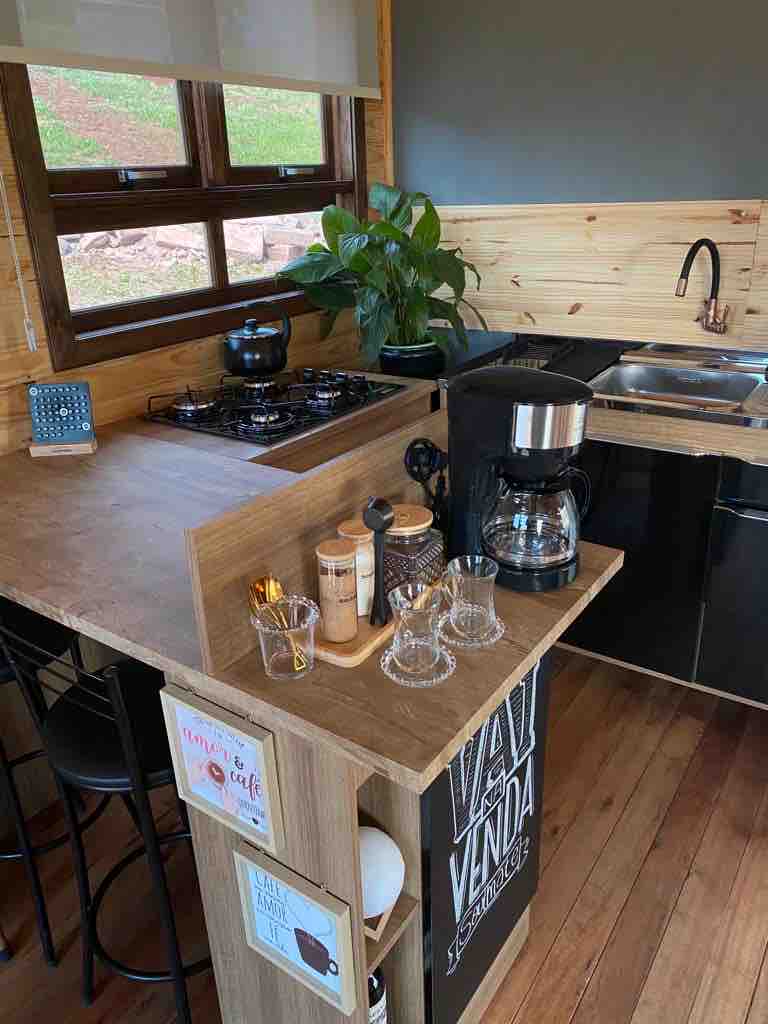 Kick back and relax in this calm, stylish space overlooking the lake. Total integration with nature, a true experience! This cabin has all the facilities for a pleasant and comfortable stay. The space, with modern decor, features a full kitchen, Wi-Fi, TV, sofa bed and outdoor bathroom. It comfortably accommodates a couple. We are located in the rural area of Novo Hamburgo, in a gated community, ideal for those seeking contact with nature, with safety and comfort.
