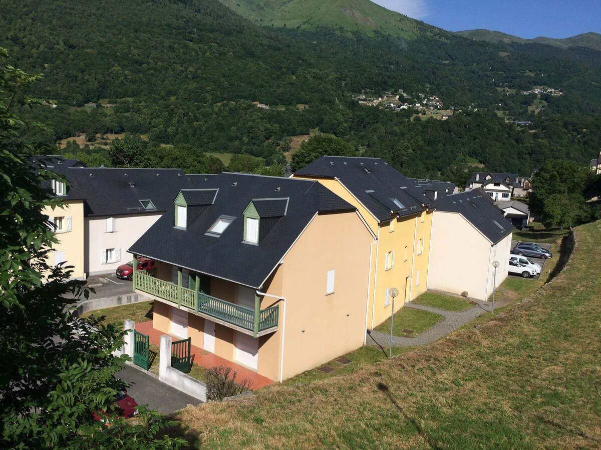 100 m from Luz-Saint-Sauveur city center. In a residence on the 3rd and top floor (no neighbors above who walk with ski boots at 7am!!!) The apartment sleeps 6 max. With duvets. 1 bedroom, 160 cm bed Bunk beds 2 x 90 cm sofa bed 160 cm + TV Furnished balcony: table, chairs, a small comfortable sofa with a coffee table. New bathroom with spacious walk-in shower. Check-in after 3pm checkout before 11 a.m.