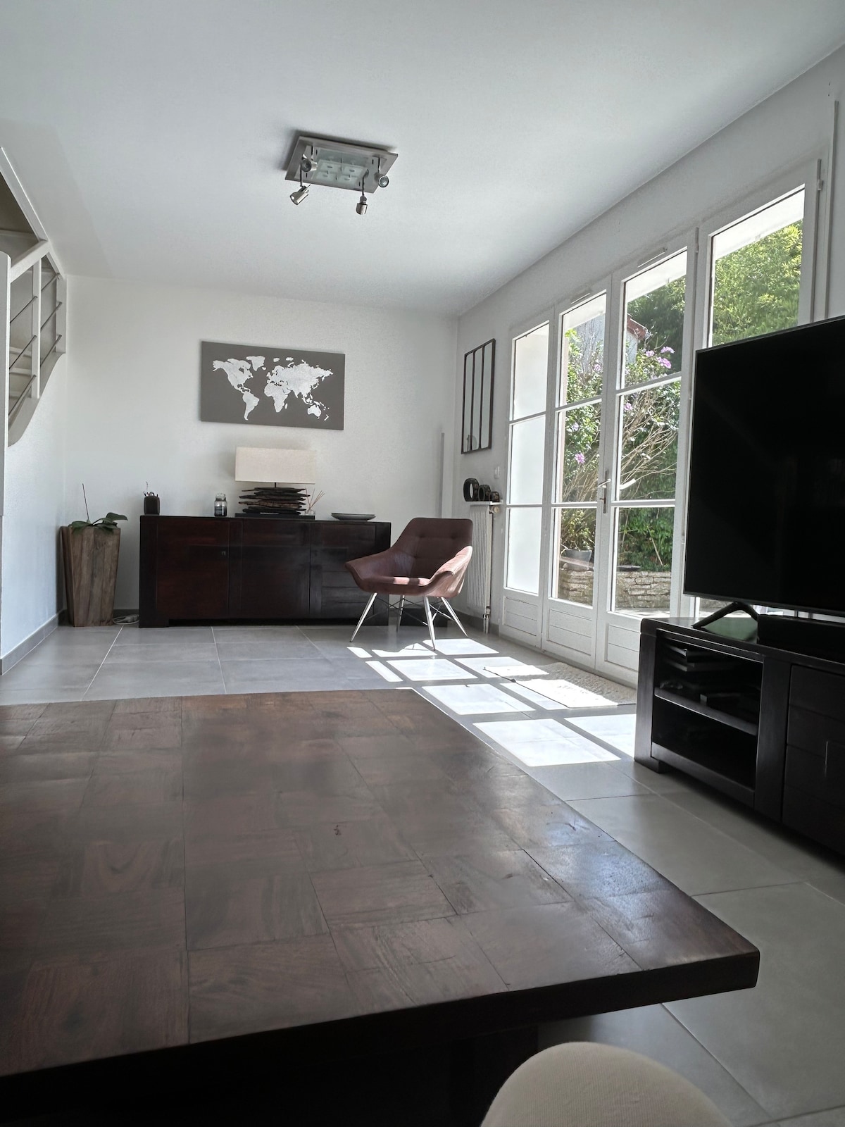 This warm and spacious home is located in Evry Val de Seine, close to shops and transport (3 min walk from RER D) Enjoy this beautiful 200 m2 house combining old and modern, with family or friends, living room, dining room, modern kitchen and large terrace. It has 5 bedrooms with 4 double beds and 1 single bed, all with an ensuite shower room. Ideal for visiting Paris and its surroundings or for a relaxing weekend on the banks of the Seine (5 min walk).
