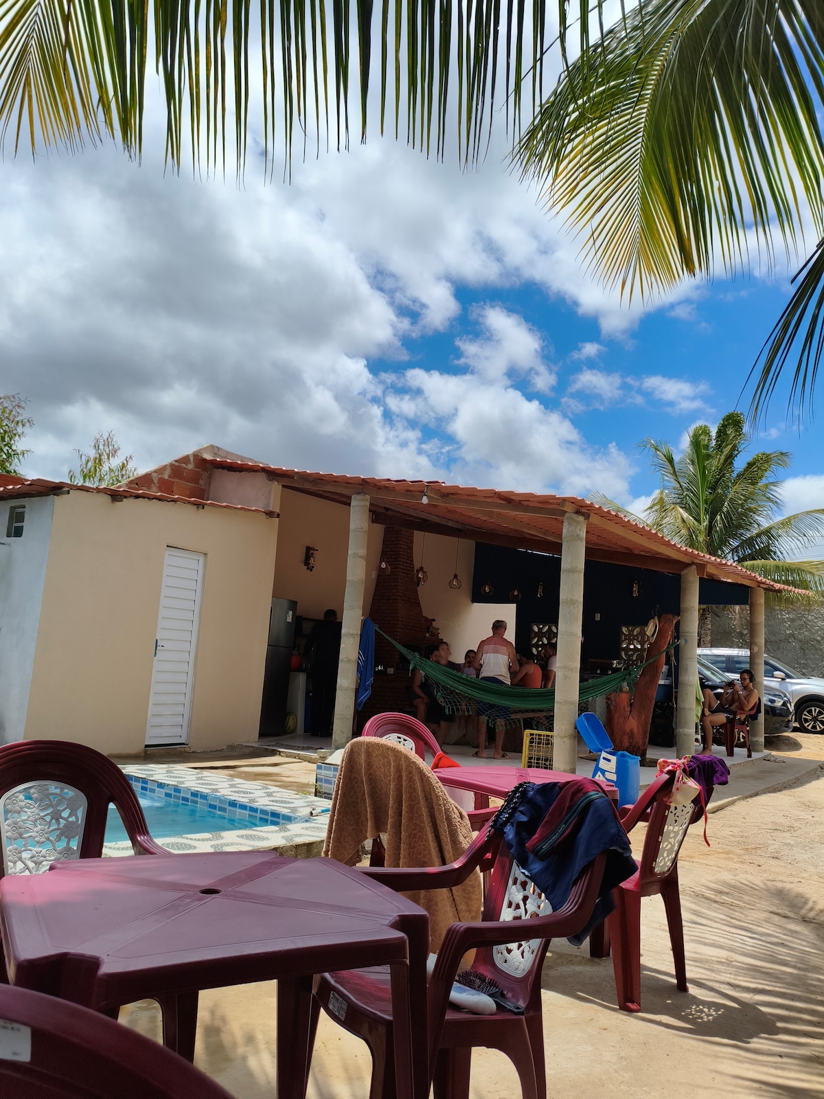House located 500m from Abaís beach (Estância/SE). It contains 3 bedrooms (1 suite), plus a social bathroom, a large living room (sofas, tables, chairs and TV), a full kitchen (freezer, a refrigerator, a stove, cutlery, pots and pans, plates and glasses), a pool and a barbecue with 2 tables and 12 chairs outside. The outdoor area also has 2 hammocks for rest. Garage space for up to 3 small cars. We recommend visiting Lagoa dos Tambaquis, which is located 1 km from the house.