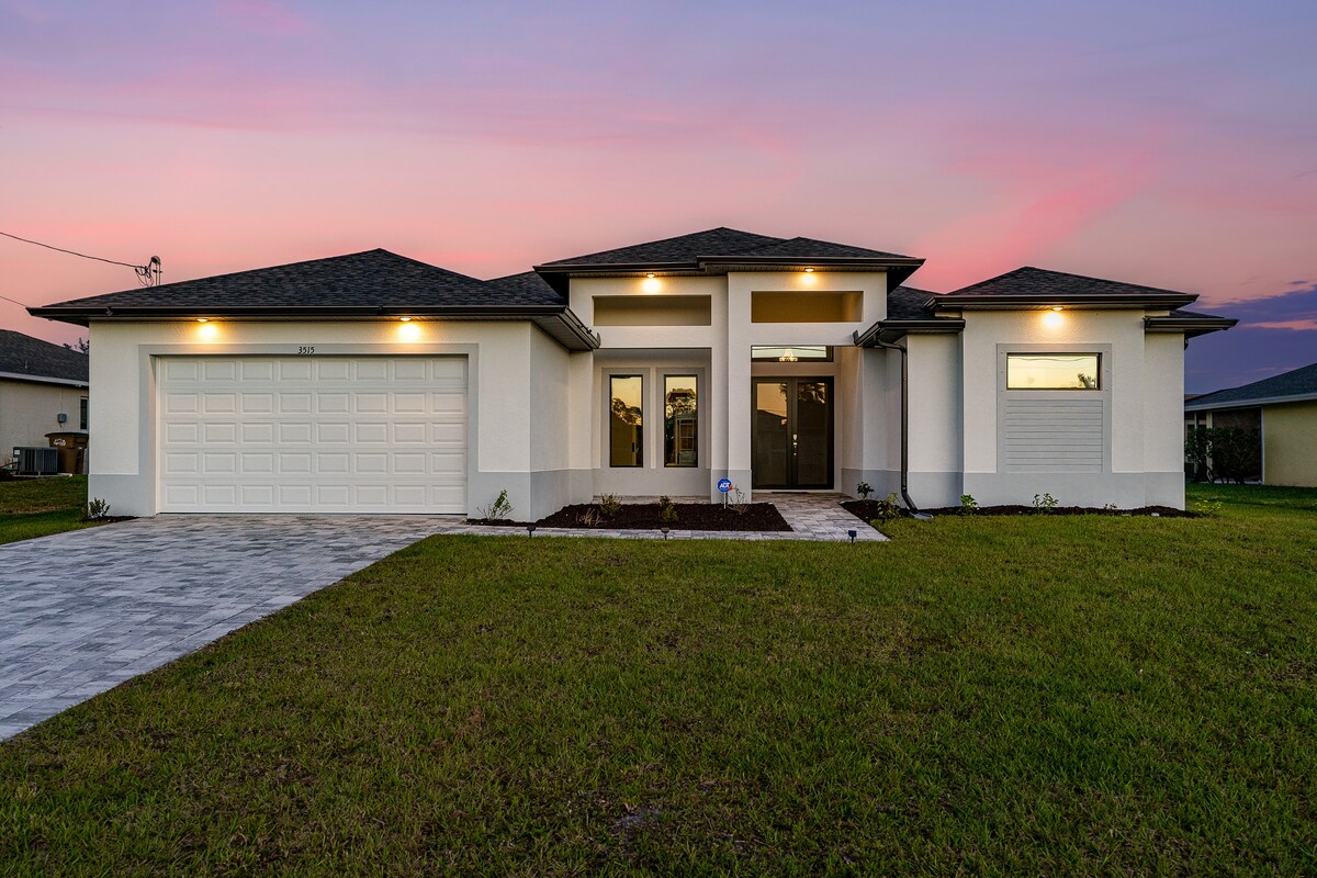 Come stay at our 5-star waterfront property. Completed in 2023, it is a professionally interior-designed home. Relax and indulge in two luxurious bathrooms featuring breathtaking walk-in showers, complemented by a spa bathtub to delight your senses. Wake up feeling totally revitalized and relaxed in one of our three opulent king memory foam beds. Heated pool for $15 A DAY, weather permitting, pool heats to around 80-86 degrees. Private putting green on a wide freshwater canal, EV CHARGER.