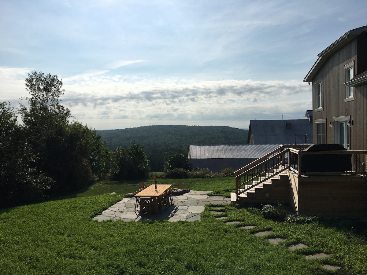 This newly built house is located on our 90 acre property. It is surrounded by an orchard, a vineyard and forest. The quaint and natural setting is perfect for couples, solo travellers or families. Cross country skiing, running and hiking can be practiced on the property. Bromont and Sutton downhill ski slopes are a 35 minutes drive away. Jay Peak, Vermont is 1h15 away by car. The surrounding country roads provide for wonderful bike rides.