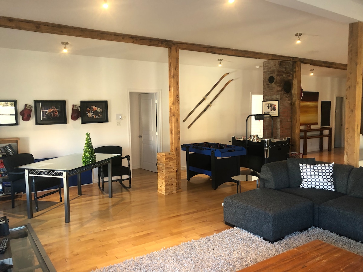 Treat yourself to a luxurious, new, very bright loft with stunning views of Mont Orford. You will have access to the large property with private lake located behind the house. The loft is tastefully decorated, the kitchen is complete, the bathroom includes an open shower and the sofa bed is as comfortable as a bed (Queen size). Located in the heart of a small village in Estrie, there are plenty of destinations to keep you entertained. Perfect for couples, solo and business travelers