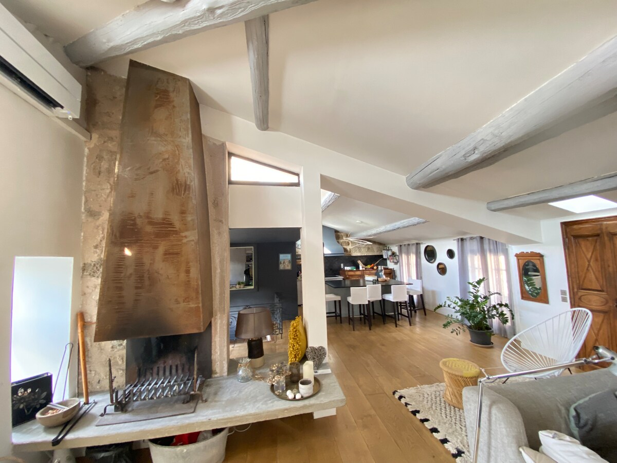 Beautiful Authentic Loft in a typical Sétoise house in the heart of the central and historic Upper District. Completely tastefully renovated. This unique space combines the charm of old stones with refined decor, offering a warm and elegant setting for your stay Cozy Balneotherapy area with its two-seater Jacuzzi Bathtub. Large modern open kitchen fully equipped and air-conditioned living room Linens and towels provided Large screen TV, Netflix, Air conditioning