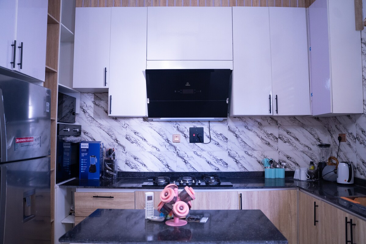 Nestled in the stunning Royal Pine Estate, Lekki. our 4-bedroom luxury homes are not just a place to stay but an experience. Picture this: a spacious living room where you can unwind, a master bedroom with a walk-in closet, and rooms that are all ensuite. We’ve got unlimited WiFi and Smart TVs in every room. Enjoy our gym, snooker, and table tennis facilities! And when it’s time to cook, our fully fitted kitchen has everything you need—think washing machine, and even a PS5 for entertainment!