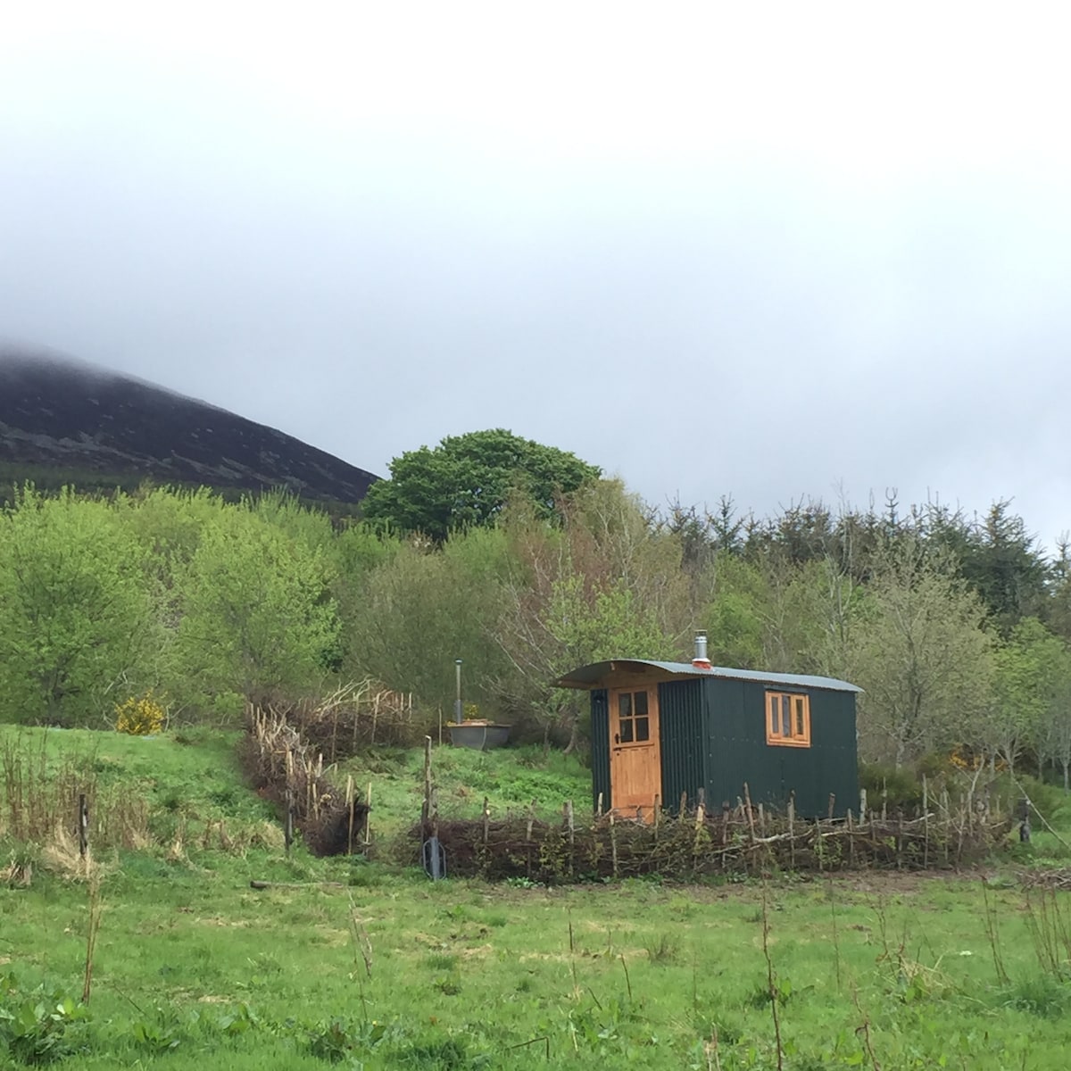 Enjoy the setting of this romantic spot on a working sheep and cattle farm in the Dromara Hills, nestled in nature. Between Castlewellan and Dromara, 15min drive to Newcastle, 25min from Belfast. A couples retreat with a new electric hot tub in the middle of a mountain, sheep as the only possible disturbance. Guests are welcome to meet and greet our animals at the gate up to the hut. Honey the Falabella horse, 5 pygmy goat and our Free range hens, who give our guests eggs in our welcome pack.