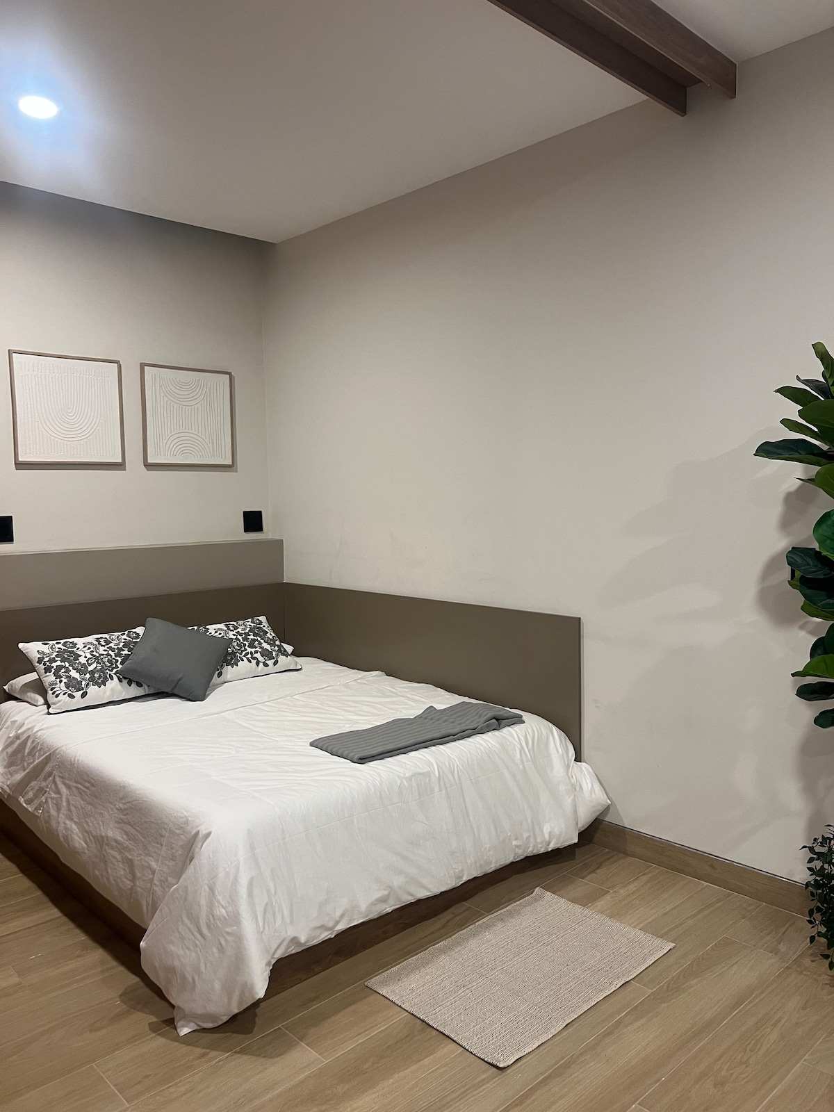This apartment is located just a few steps from the city's most important convention center: Expo Guadalajara. If you come for a congress, fair or business trip, you won't find a better location. 🛏️ 2 bedrooms with a comfortable bed 🛋️ Living room with Smart TV and high-speed WiFi 🍳 Kitchen equipped with basic utensils 🧼 Private bathroom with hot water and clean towels 🚗 Parking available 🌞 Excellent natural lighting and ventilation