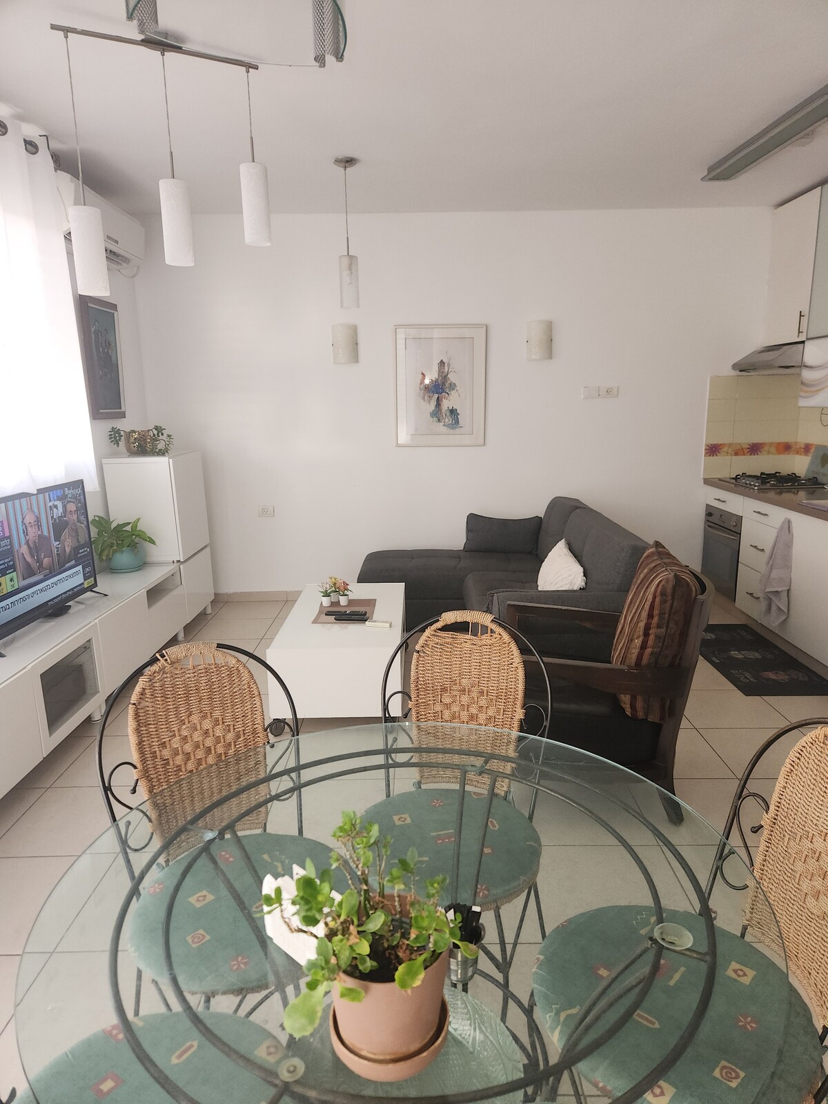 Quiet garden suite on the ground floor in Tel Aviv Enjoy a calm stay with direct access to a neat garden with table and chairs — perfect for relaxing in the city. Ultra-fast fiber-optic internet 📶, powerful air conditioning, smart TV with many channels. Fully equipped kitchen, neat bathroom, washer and dryer in the garden. Free street parking nearby 🚗 and a shared, well-equipped bomb shelter 5 meters away. Ideal for couples, solo travelers, and business guests seeking comfort.