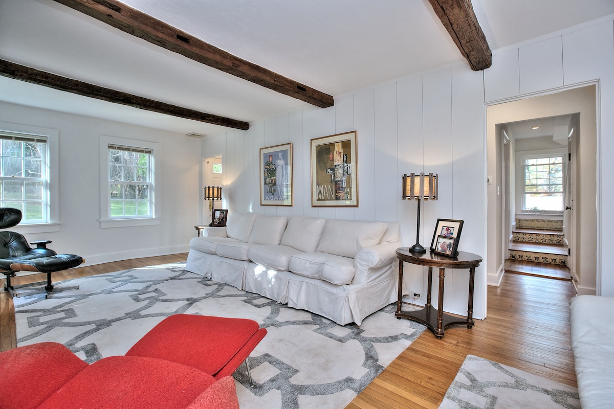Price includes Airbnb fees. Cozy, pet-friendly cottage in a peaceful setting just 70 miles from NYC and minutes from I-84 (Exit 8 or 9). This clean & comfortable retreat features 3 bedrooms (2 queens, 1 full), and pull-out couch. Portable A/C's in summer, and fireplace for cozy nights. The greenhouse adds plenty of natural light, the yard is perfect for kids, the front deck is great for morning coffee, and the gas grill great for cooking out. High-speed WiFi and 3 smart TVs.