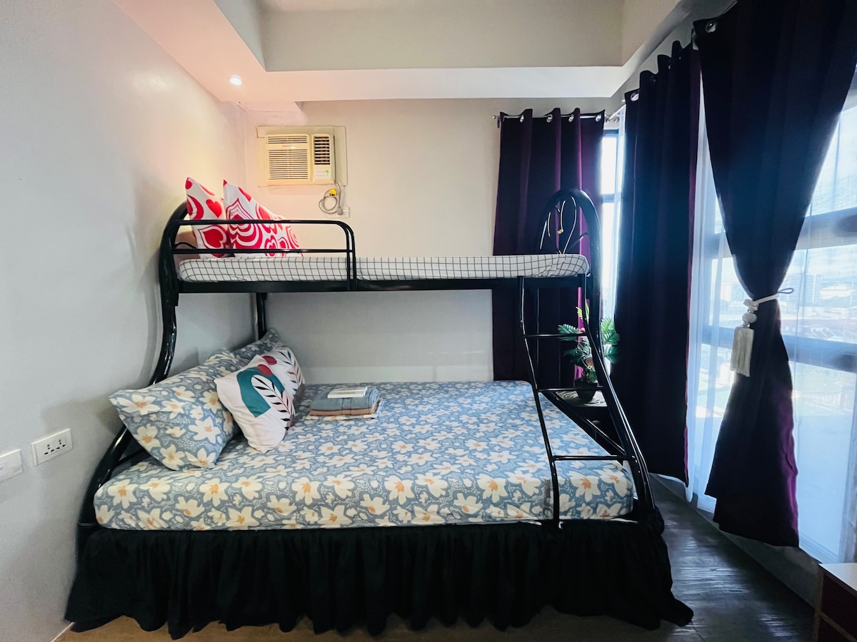 Luxurious 1 Bedroom unit. Walking distance to malls, 24hrs convenience stores, restaurants, groceries, and Lively Nightlife. ♛ 55" 4k UHD TV + A/C + Workspace ♛ Nintendo Switch for more fun! ♛ Netflix, Disney+, and Youtube access ♛ 400mbps upload and download speed! ♛ Board games are provided if you wanna have fun with friends! ♛ fresh towels, and essentials provided ♛ Kitchenwares, cooking appliances, Microwave ♛ Coffee Machines ♛ Steam Iron, Hairdryer and Water Heater